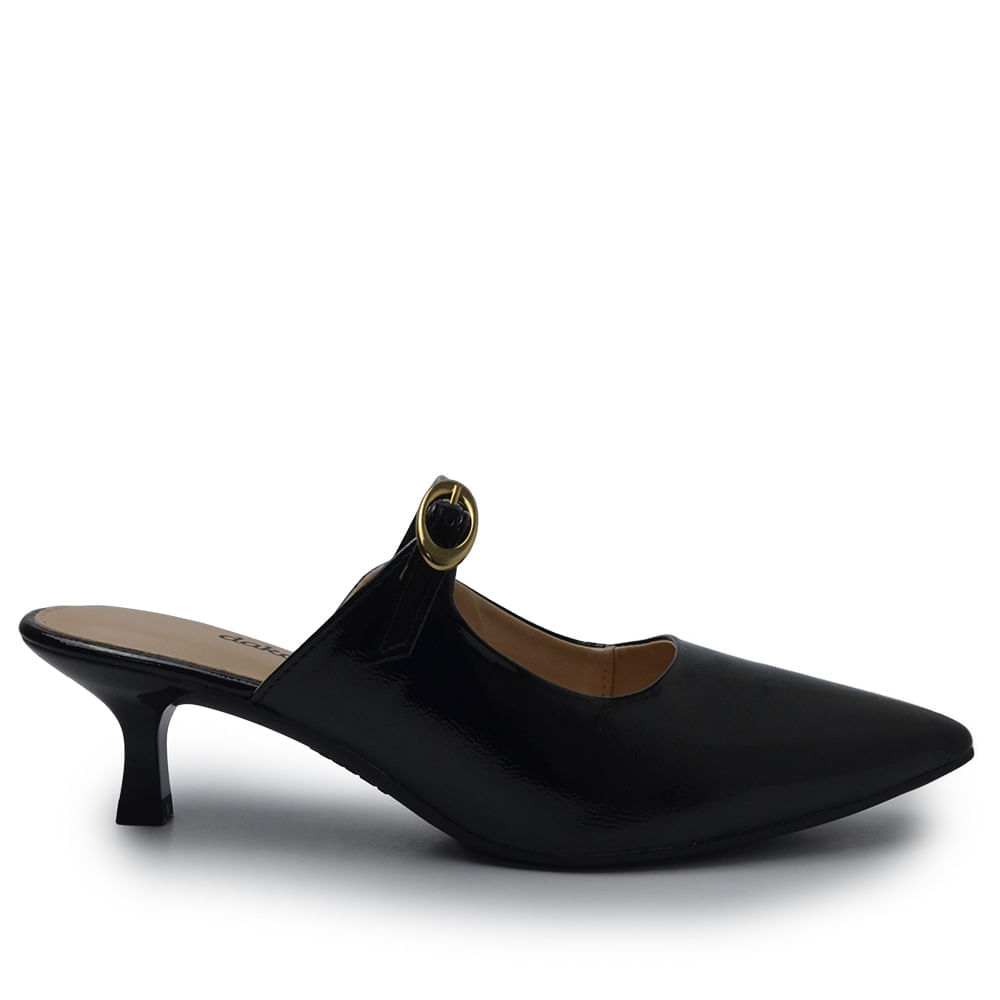 O bico fino alonga a silhueta e garante um ar refinado, enquanto o salto baixo proporciona conforto e estabilidade para o uso diário.