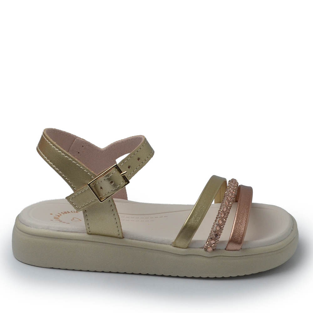 A Sandália da coleção Mini Sua Cia é perfeita para os dias mais quentes, combinando conforto e estilo em qualquer ocasião. Seu design arrojado apresenta um cabedal formado por 3 tiras largas, sendo uma delas com detalhes em strass brilhante, garantindo charme e sofisticação. O fechamento em fivela oferece segurança, enquanto o solado flatform proporciona modernidade e conforto. Versátil, essa sandália é fácil de combinar com diferentes looks, como vestidos, saias ou outras peças leves da estação, tornando-se uma escolha ideal para meninas que amam estar na moda sem abrir mão do conforto.