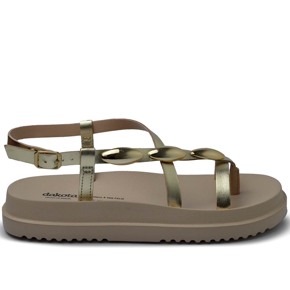 A Sandália Feminina Dakota combina leveza, modernidade e versatilidade para os dias quentes e frescos. Confeccionada em material sintético, destaca-se pelas aplicações metalizadas, que adicionam um toque de sofisticação e estilo ao modelo.