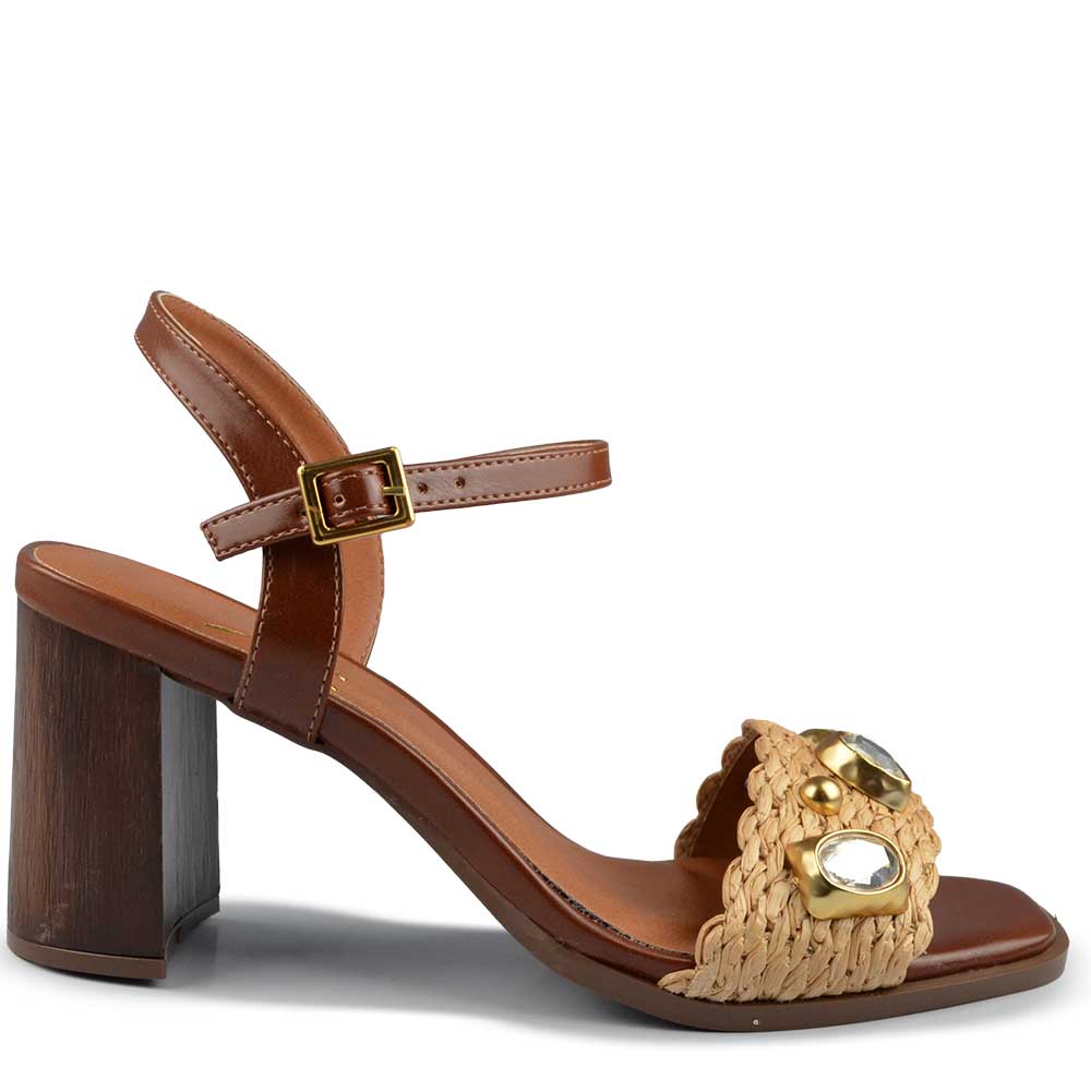 A Sandália Salto Bloco Vero K combina sofisticação, conforto e design moderno. Confeccionada em material sintético com detalhe em palha e aplicações decorativas, o modelo traz palmilha em EVA para maior maciez e solado de borracha garantindo segurança e estabilidade ao caminhar.